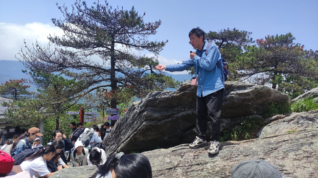 黄昆副教授在五老峰指导学生进行野外岩性识别和产状测量
