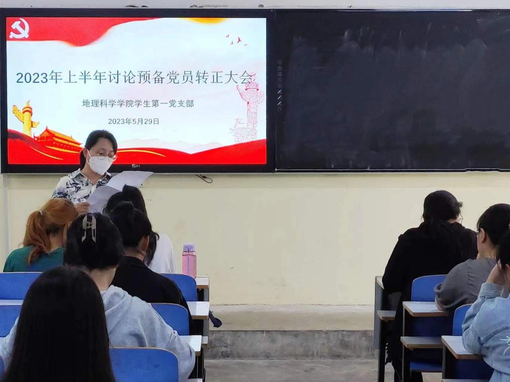 大会主要讨论确定潘柯欣、王彩、邵梦谣、王滢洁、杨灿灿、刘琳、高雯佳、杨翠、王晓翠九名预备党员能否按期转为中共正式党员的问题。会议伊始,艾甜甜对会议内容和主要流程作简要阐述并宣布预备党员发展名单。接着,九名预备党员依次汇报预备期在思想、学习、生活以及工作上的认识和感悟,并郑重宣读转为中国共产党正式党员的申请。入党介绍人向支部大会介绍预备党员在预备期间的表现情况,并对其能否按期转正表明意见,接着,与会的正式党员对预备觉员能否转正进行充分讨论并进行无记名投票。经投票表决,一致同意潘柯欣等九名同志按期转为中共正式党员,并上报学院党委审批。