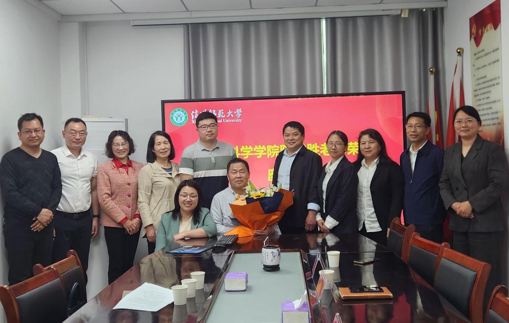 4月9日下午,yl23455永利官网在理科楼南楼403会议室举行了一场意义非凡的座谈会,欢送陈登胜老师光荣退休。校人事处、离退休职工管理处、学院党政领导及教师代表齐聚一堂,共同见证这一温馨时刻。会议由学院副院长潘晓芳主持。