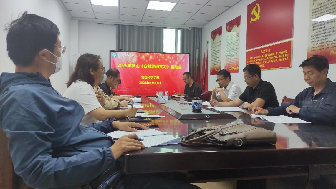 2025年04月21日,2025年庐山自然地理实习启动会在理科楼南楼403会议室顺利举行。副院长颜俊、闫军辉,实习实训中心主任范宝伟及实习班级班主任、参加实习老师参加了会议,会议由闫军辉主持。