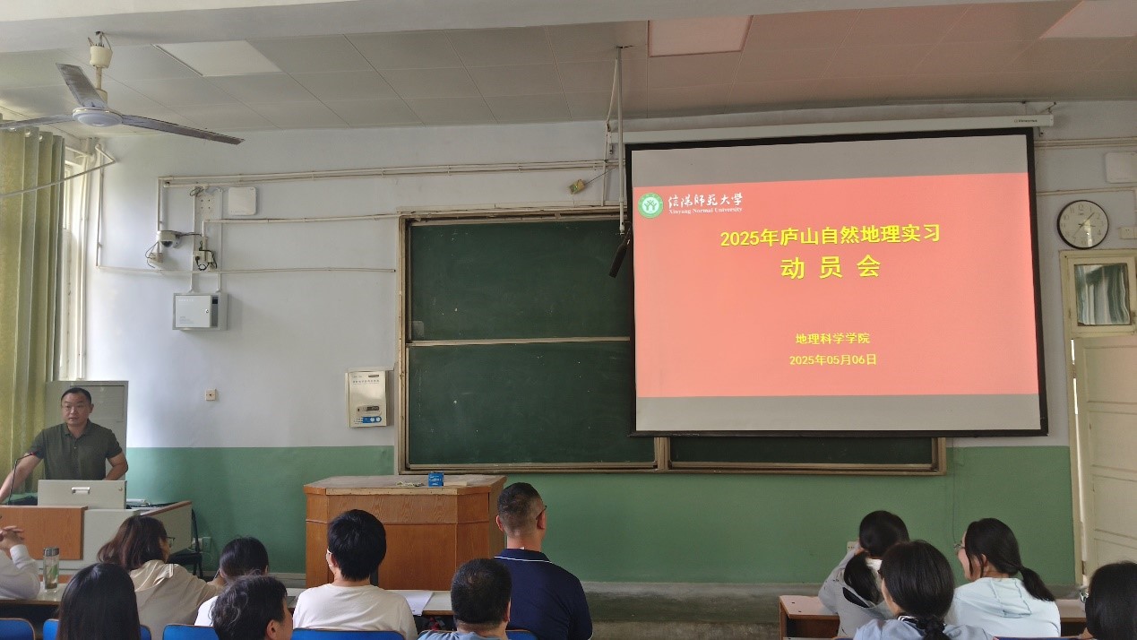 5月6日,2025年庐山自然地理实习动员会在教二梯三教室举行。党委副书记韩勇,副院长闫军辉,实习实训中心主任范宝伟,实习班级班主任,实习教师代表及2023级地理科学专业学生参加了动员会,会议由李宗盟主持。