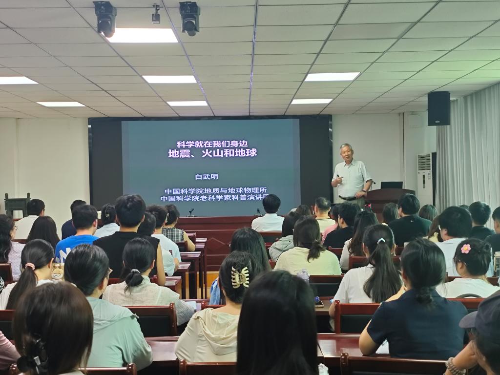 2025年6月9日,应信阳市科协和yl23455永利官网邀请,中国科学院地质与地球物理研究所白武明教授,于理科楼南楼410会议室为学院师生作了题为“科学就在我们身边——地震、火山和地球”的学术报告。信阳市科协党组成员、副主席张俊,信阳市老科协常务副会长兼秘书长张善伟、秘书处工作人员张冬梅,yl23455永利官网副院长颜俊、闫军辉,青年教师、研究生和本科生100余人参加报告会,会议由闫军辉主持。